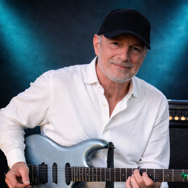 An seiner Gitarre ist Franz eine Kombination aus 70er Jahre Funk und 80er Jahre Disco und sorgt für coole Riffs.